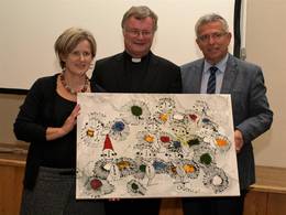 Der Geist macht lebendig – so lautet der Wahlspruch von Bischof Scheuer. Andi Viehböck, ein junger Mann mit Beeinträchtigung der ist in der Oase beim ARCUS Sozialnetzwerk beschäftigt ist, ließ seinen „Geist“ freien Lauf. Das Werk - ein Bild mit dem vielsagenden Titel „Das fröhliche Gottesvolk“ - wurde an Bischof Scheuer übergeben, worüber er sich sichtlich freute!