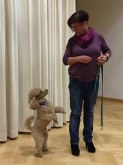 Frau Lindorfer aus Hofkirchen zeigte lustige Kunststücke mit ihrem Hund. Tiere wirken auf ältere Menschen oft sehr günstig.
